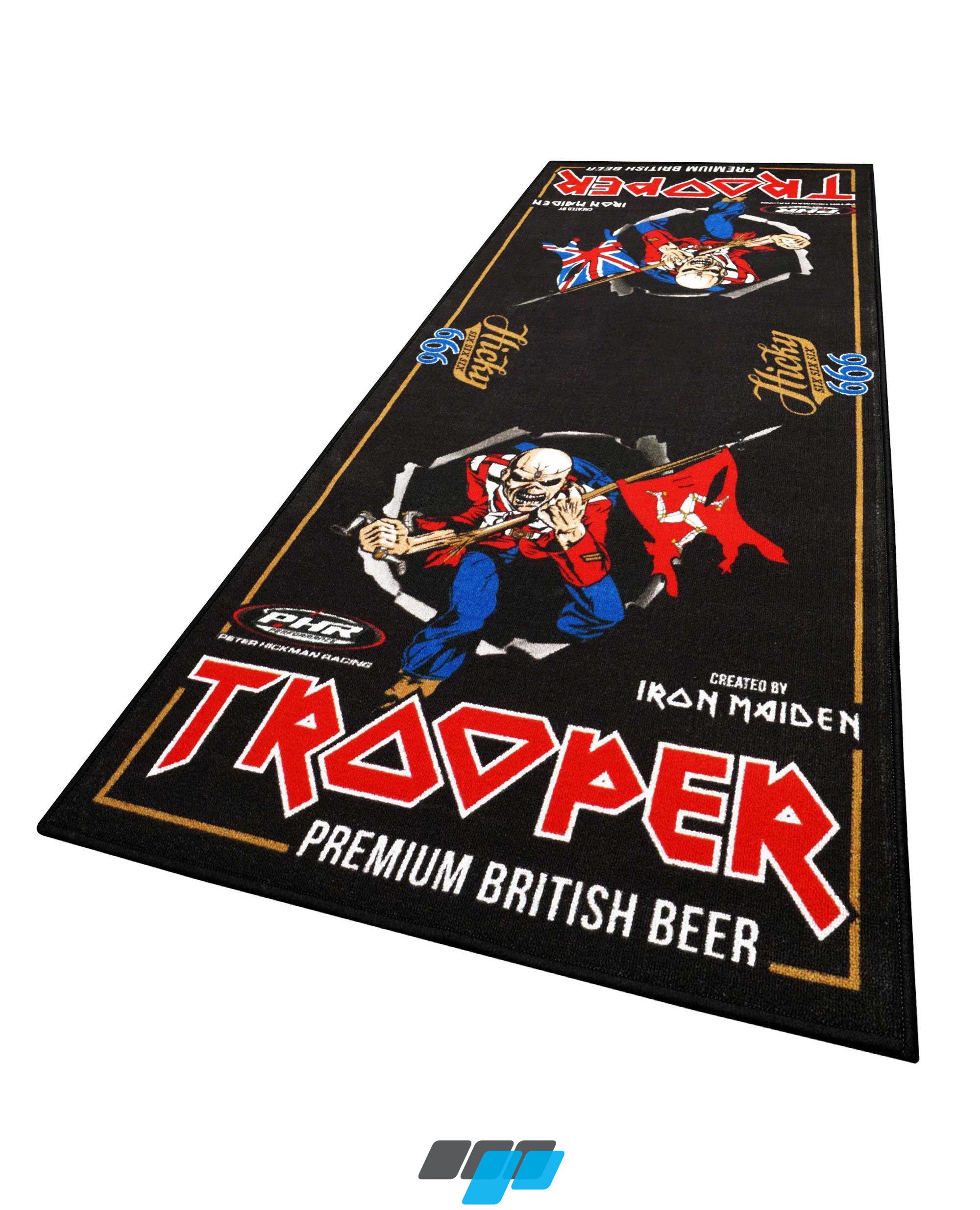 Limited edition Iron Maiden Peter Hickman branded sixty motorcycle garage mat. This extra large 240cm x 100cm garage mat can be used for decoration and display purposes in home garages. Each mat is constructed with nylon-fibre top section which is oil and water resistant. The backing is non-slip and prevents lubricants seeping through.