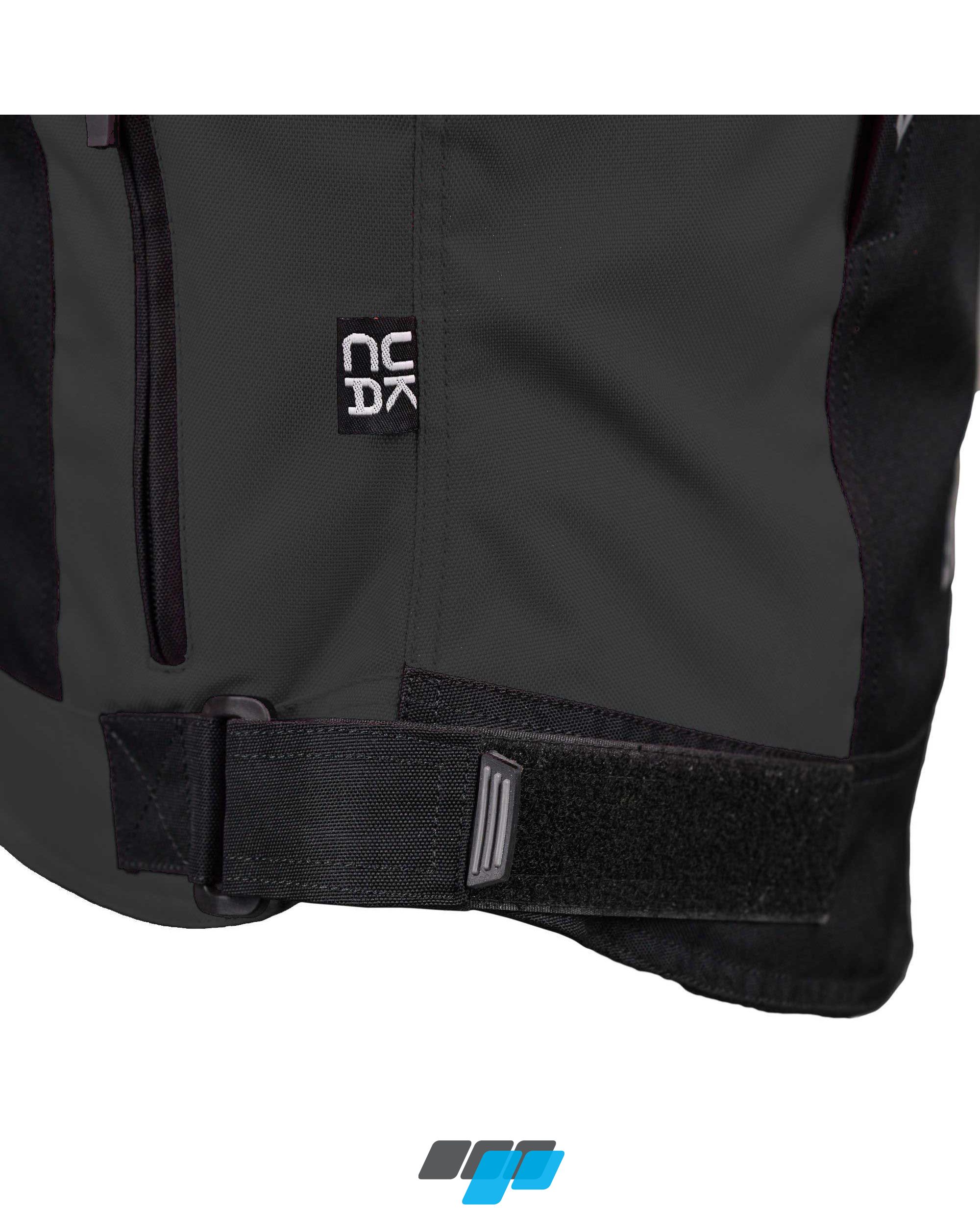 Adjustable waist and arm velcro tabs allow the fit to be tailored whilst a 200mm zip at the rear seamlessly connects any compatible pant or adapter to the jacket. Also features adjustable zippered vents offer cooling when needed.