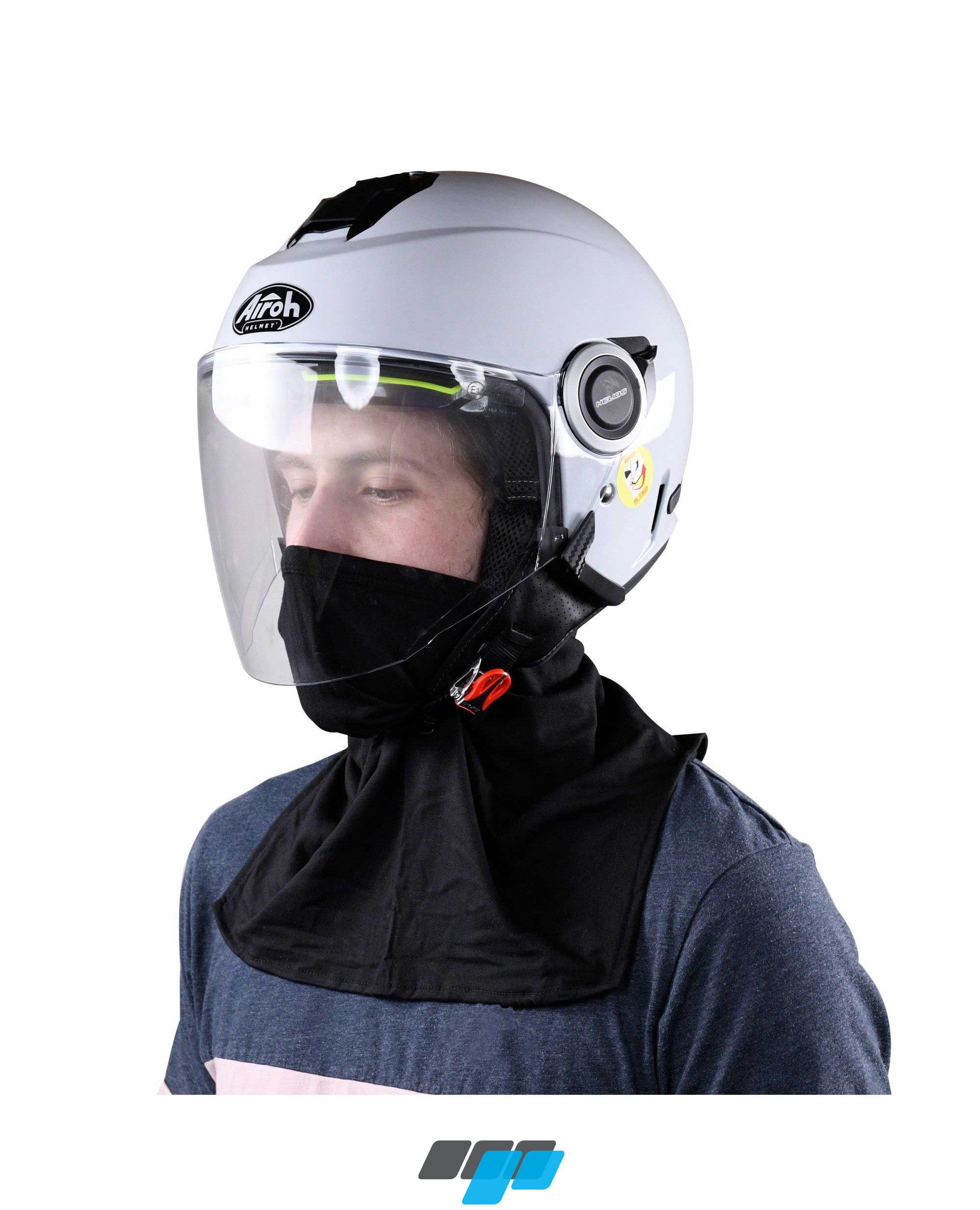 Easymask neck tube is a stretch to fit cotton/lycra neck tube / face mask to keep your neck and face warm under a motorcycle crash helmet. Acts as a neck tube and light face mask by simply pulling up over nose to act as a facemask, while also keeping your neck warm