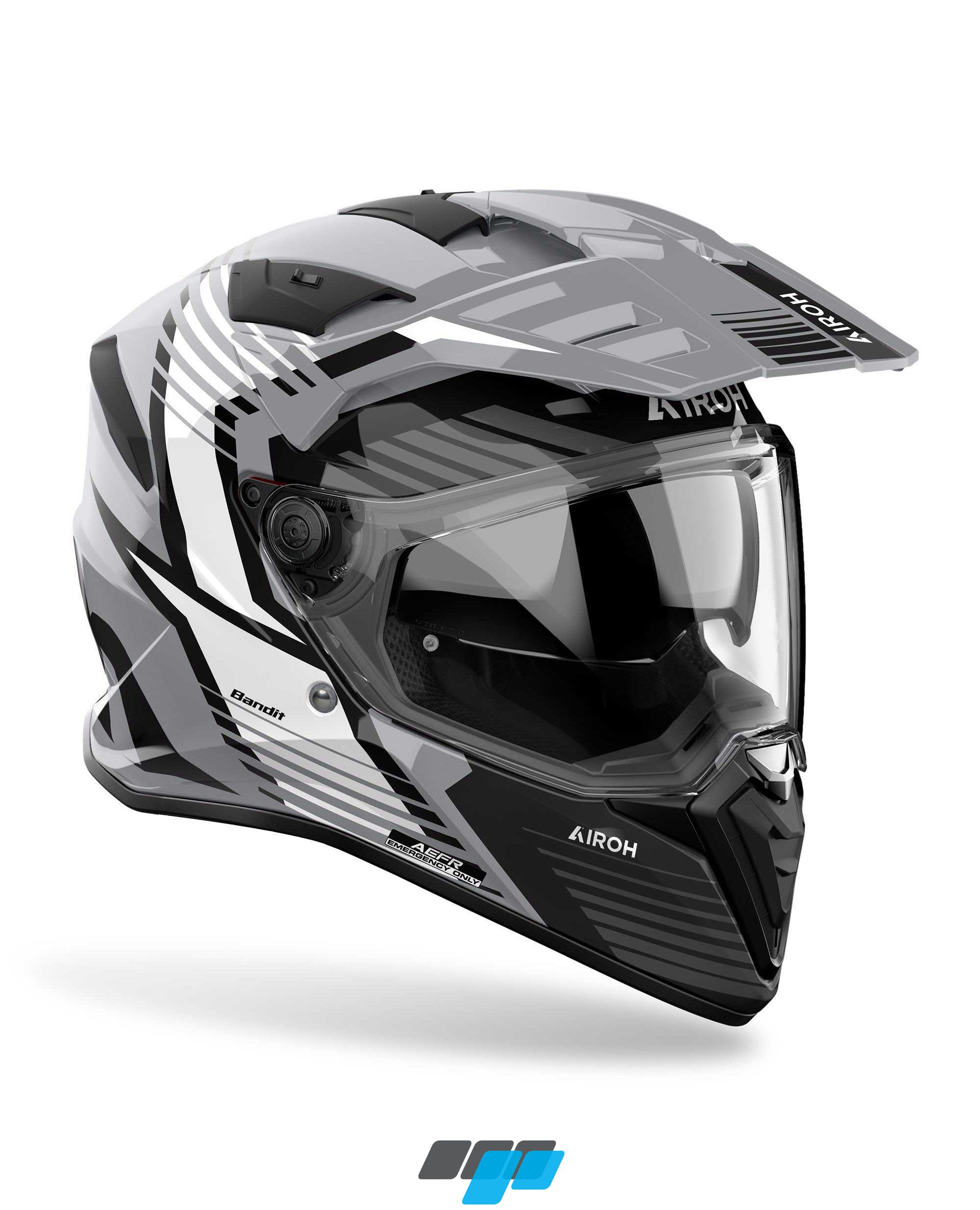 The Airoh bandit helmet is a 2-in-1 helmet able to adapt to every need thanks to the ability to transform from an adventure to a road helmet in a few seconds. This helmet is homologated to the latest ECE 2206 standard. Featuring a Spicy Grey Gloss colour scheme