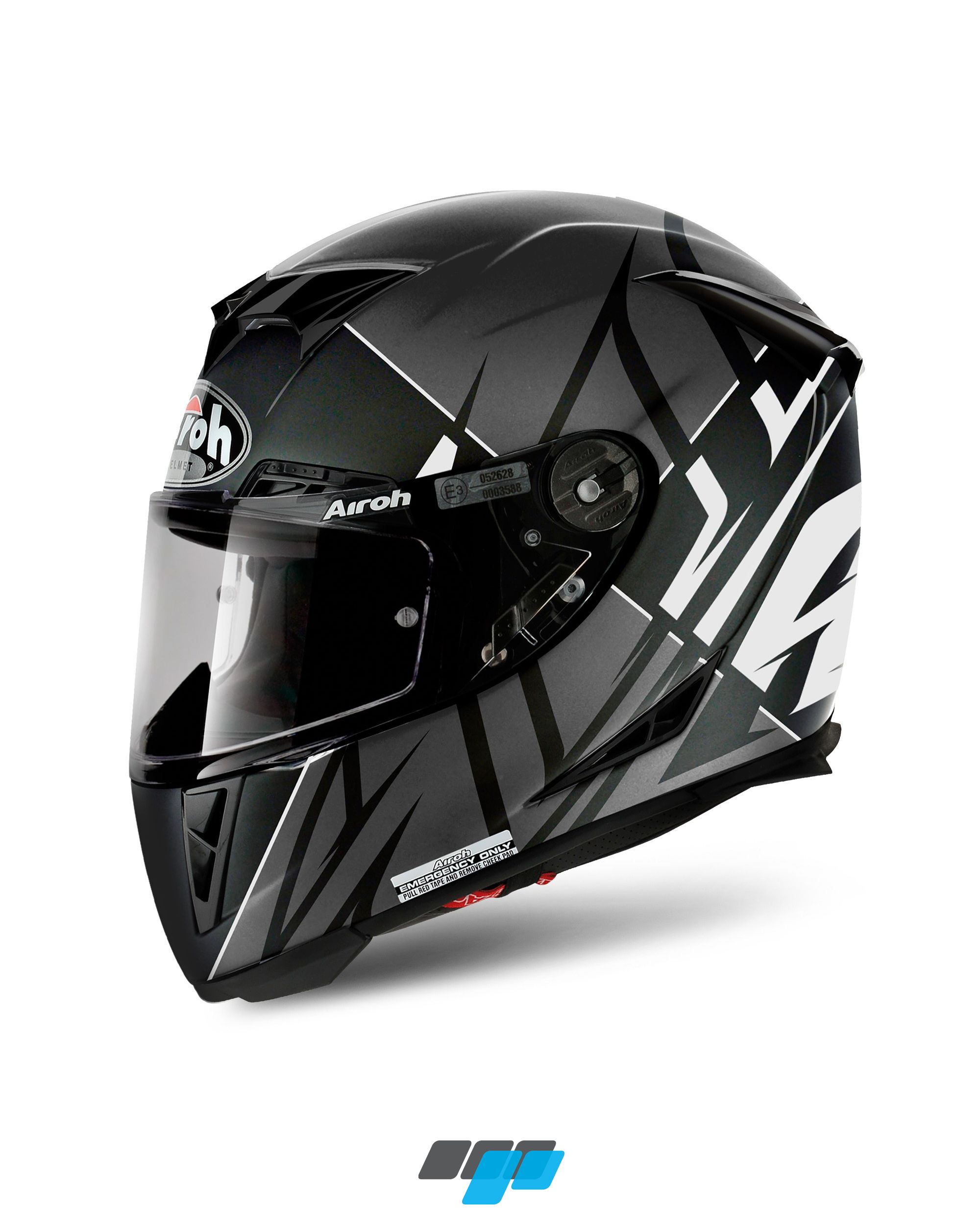 Airoh helmet GP500 full face motorcycle helmet in sectors white matt colour scheme is a dedicated racing high performance composite helmet designed for the road or race track.