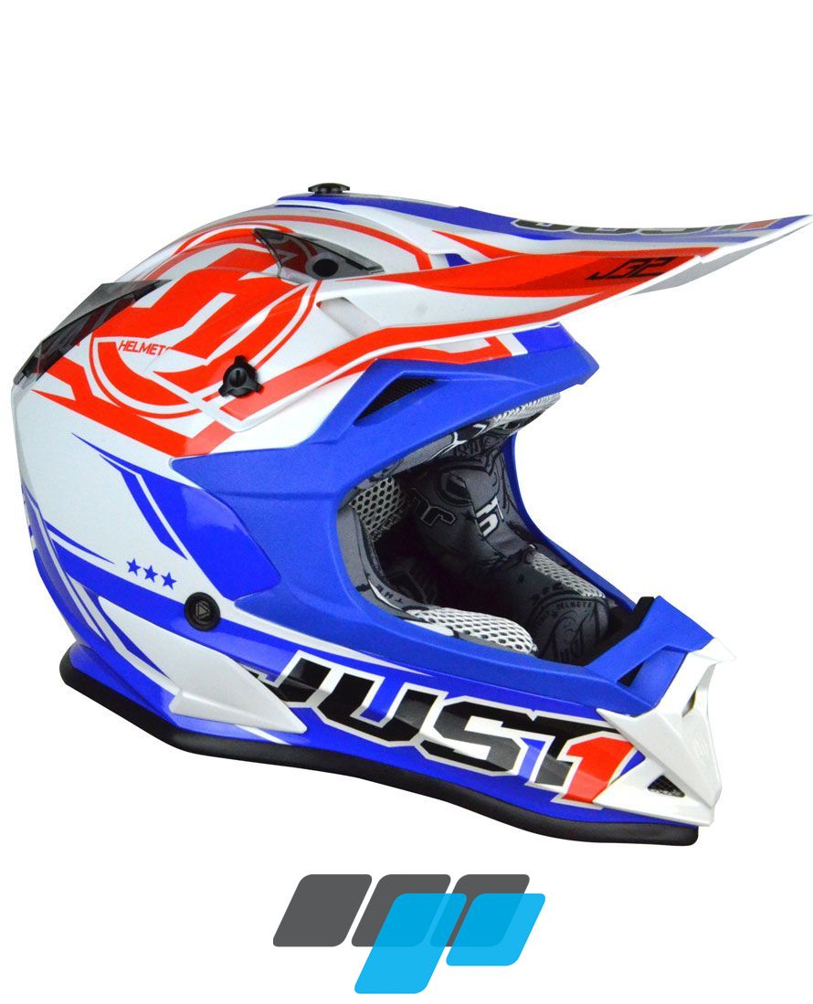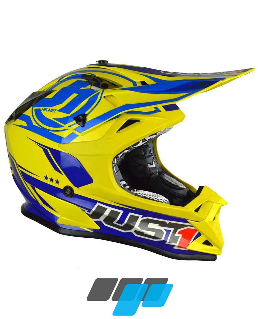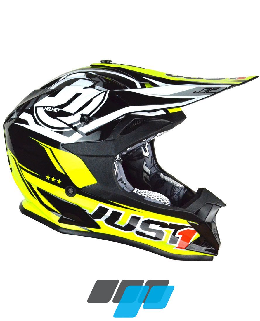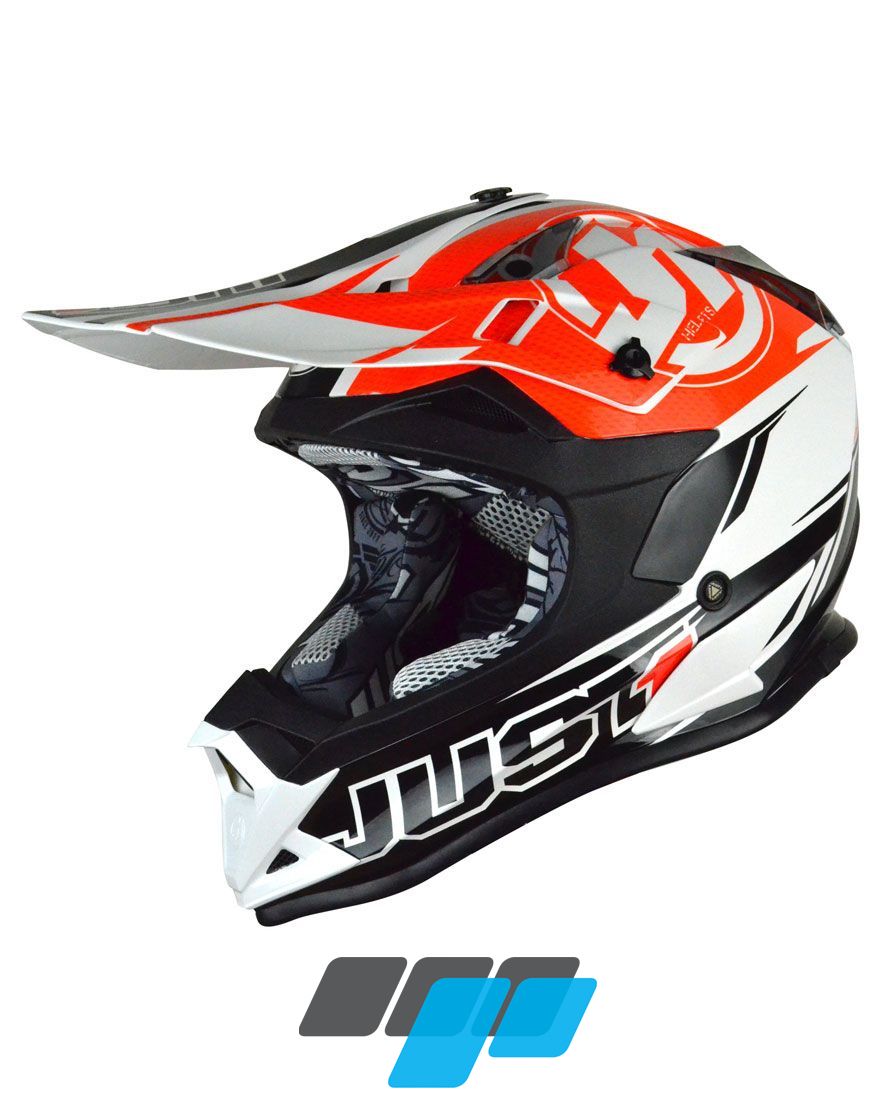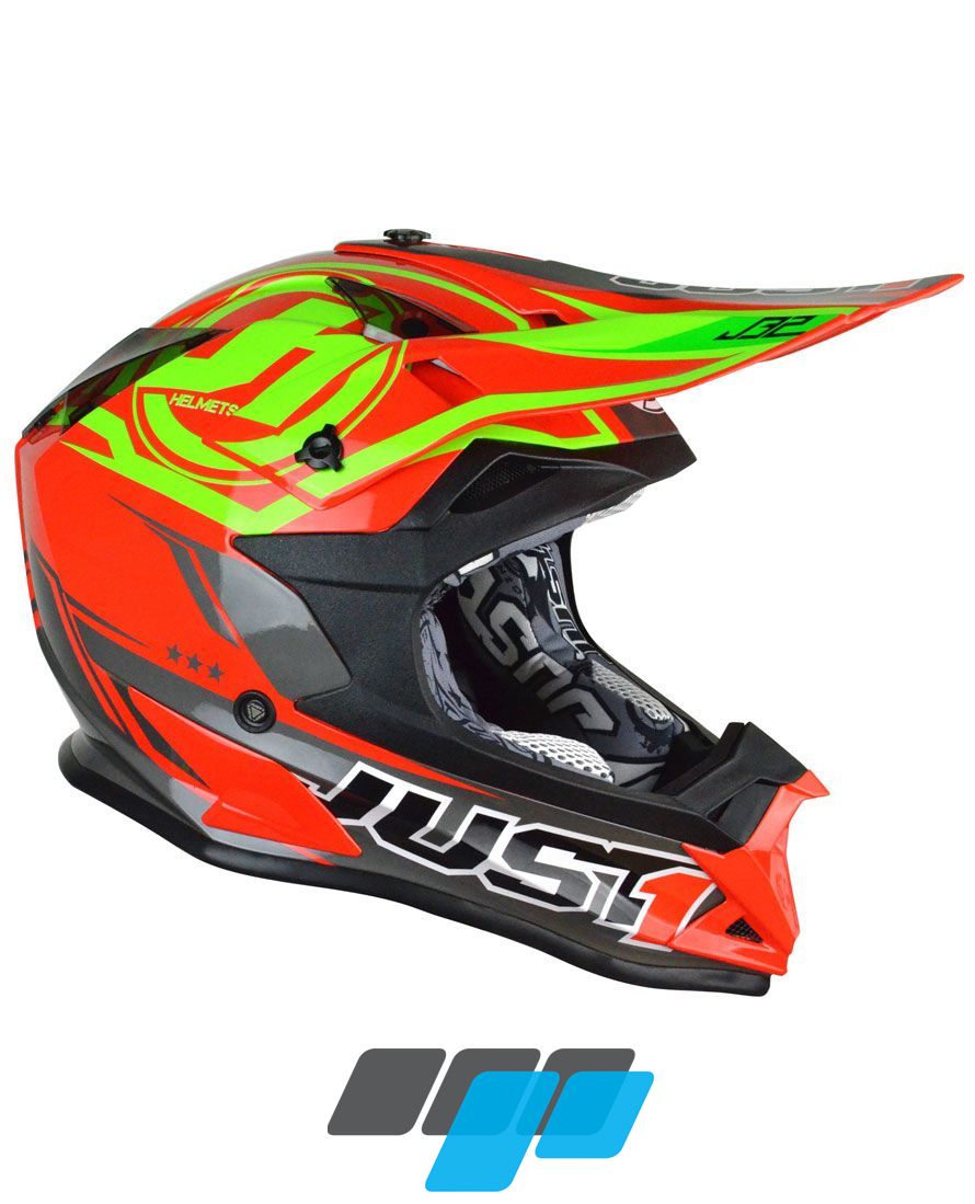 Just1 J32 Rave motorcycle crash helmet is a high-quality off road helmet manufactured with a thermoplastic resin shell featuring multiple massive air vents and the J.1.E.R. (Just 1 Emergency Room) cheek pad removal system. The J32 is also neck brace ready.