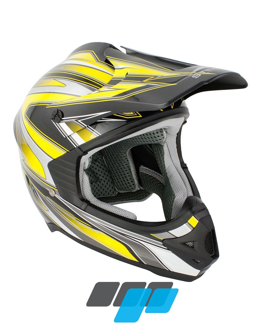 Stealth MX Helmet HD203 Edge is a value packed entry level motocross helmet, aggressively styled shell is manufactured from a high-tech speciality thermoplastic with dual density EPS liner for optimum protection, the Stealth HD203 is ACU Gold approved for race use