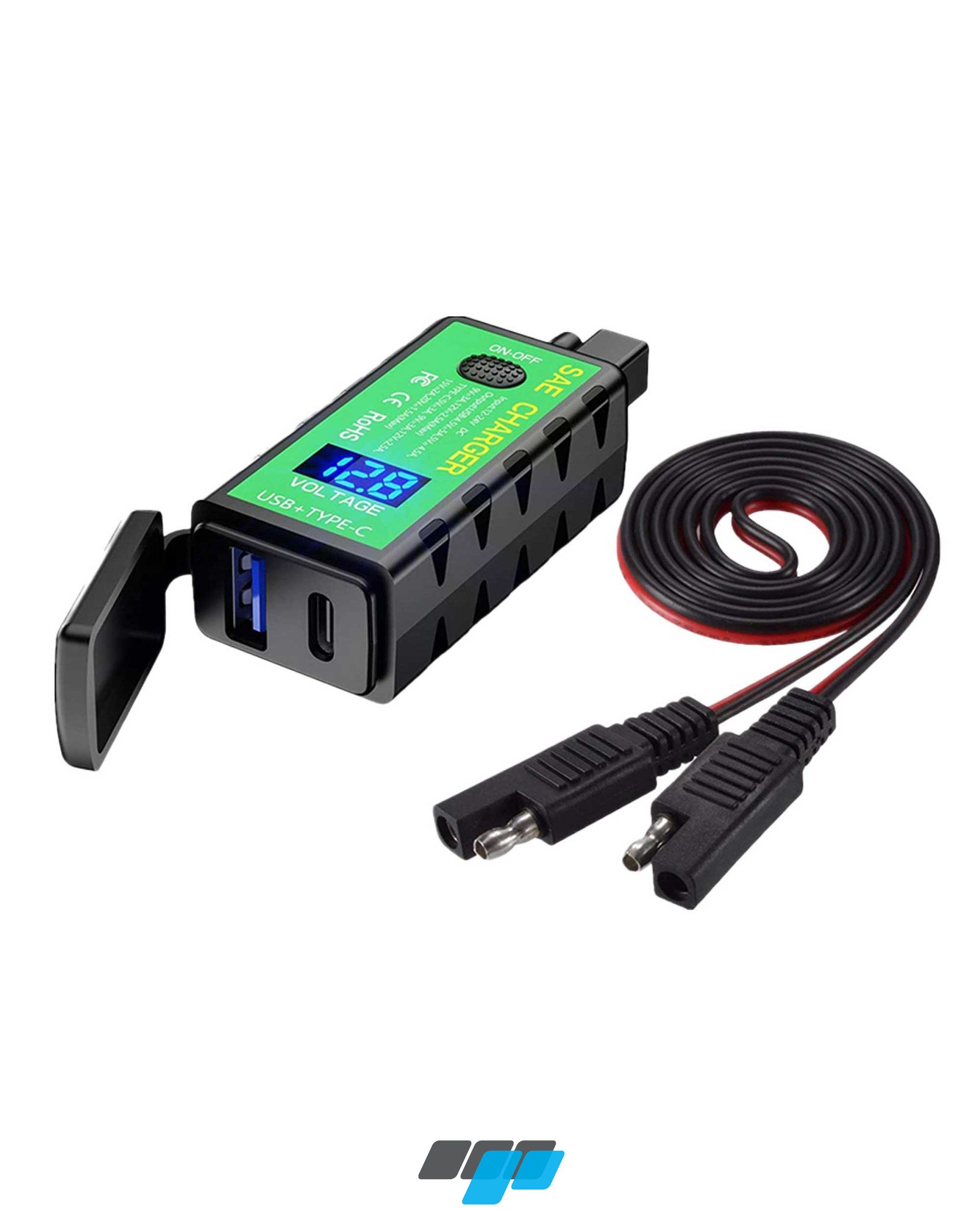 Introducing the dual USB 3.0 and USB-C motorcycle mobile phone charger, featuring on/off switch and voltmeter. Keep your phone and GPS charged for uninterrupted journeys.