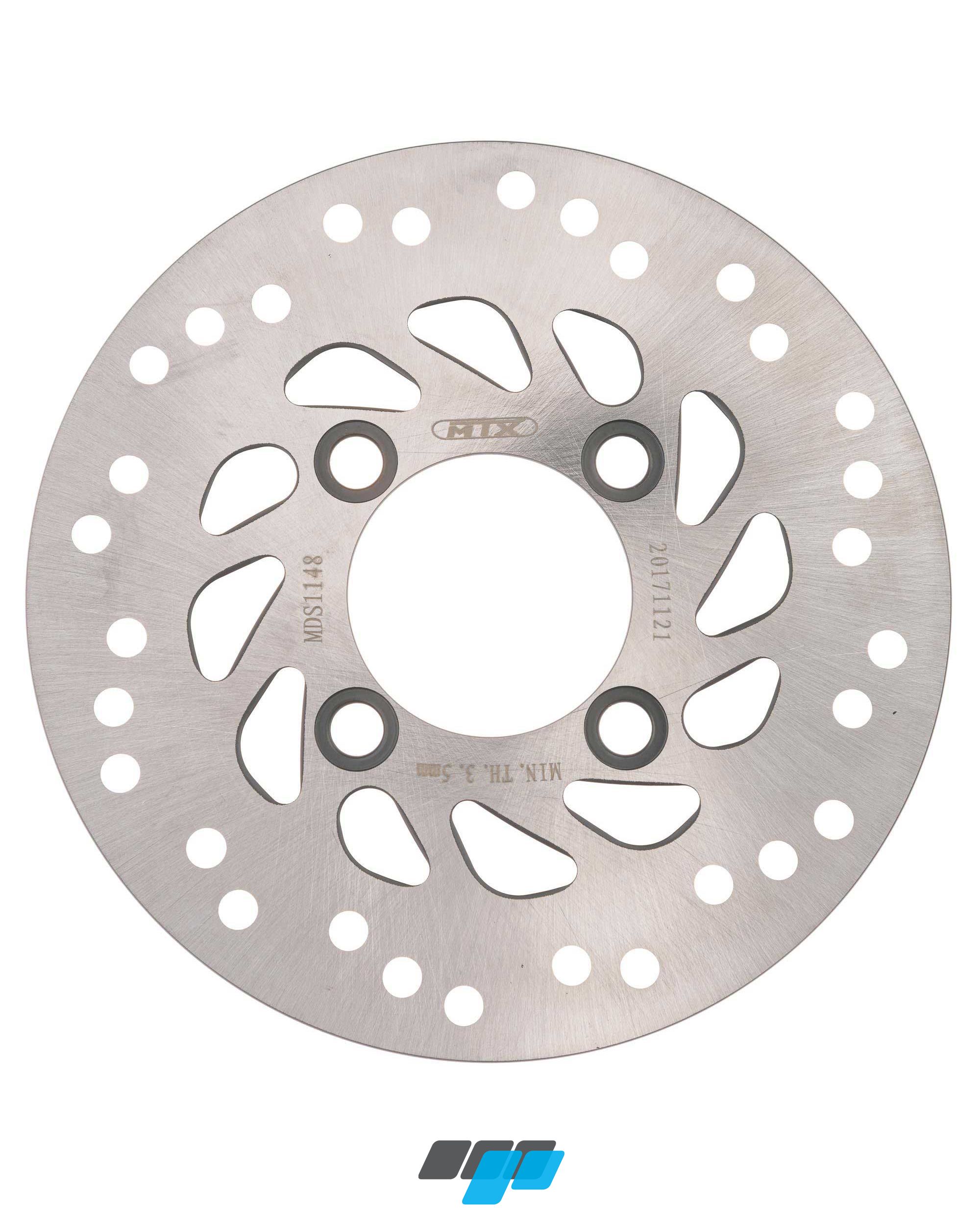 MTX replacement rear brake disc featuring 190mm diameter solid, non floating, rear brake disc for Honda MSX125 2013 to 2021 Grom motorcycles. Suitable aftermarket replacement for EBC MD1184.