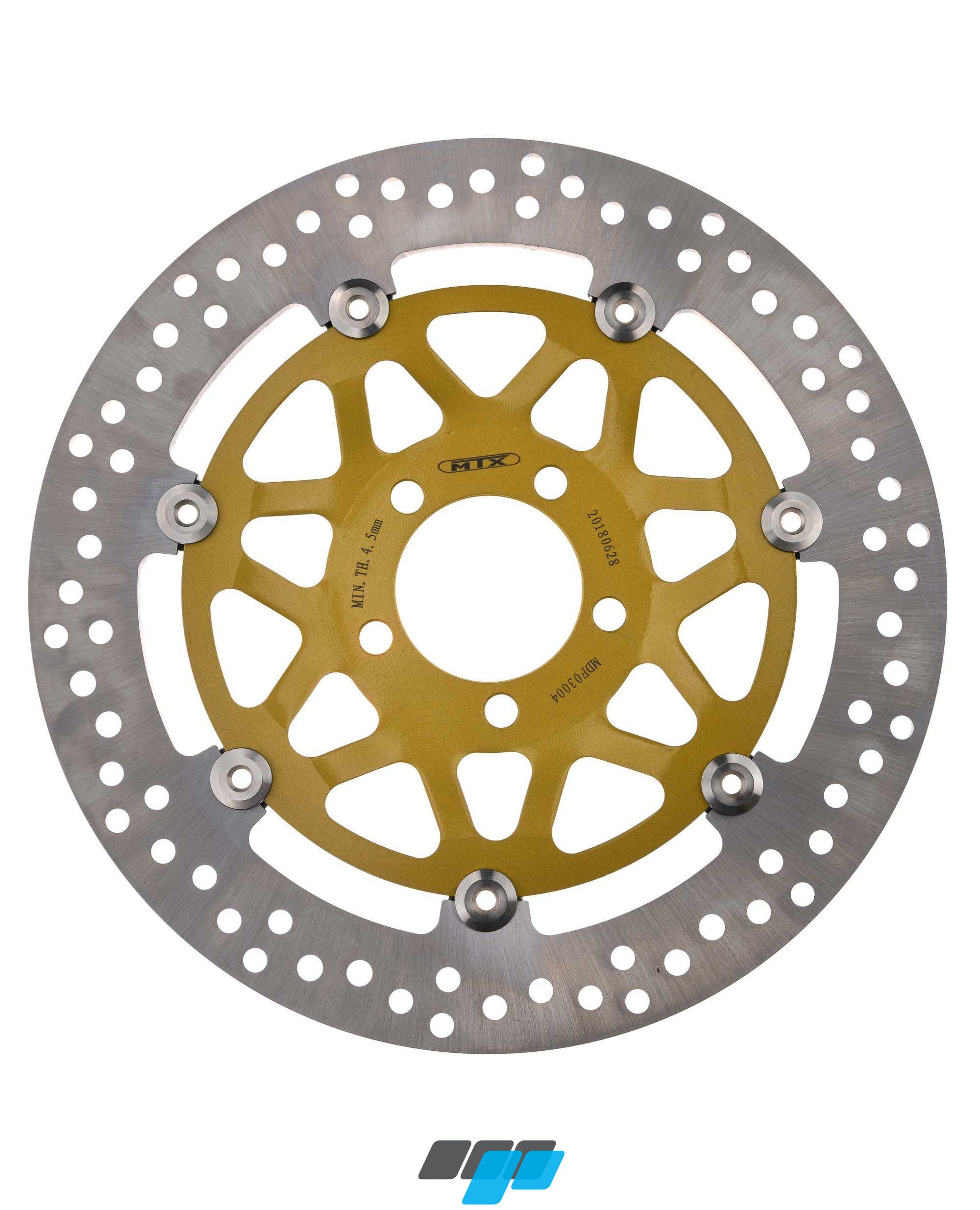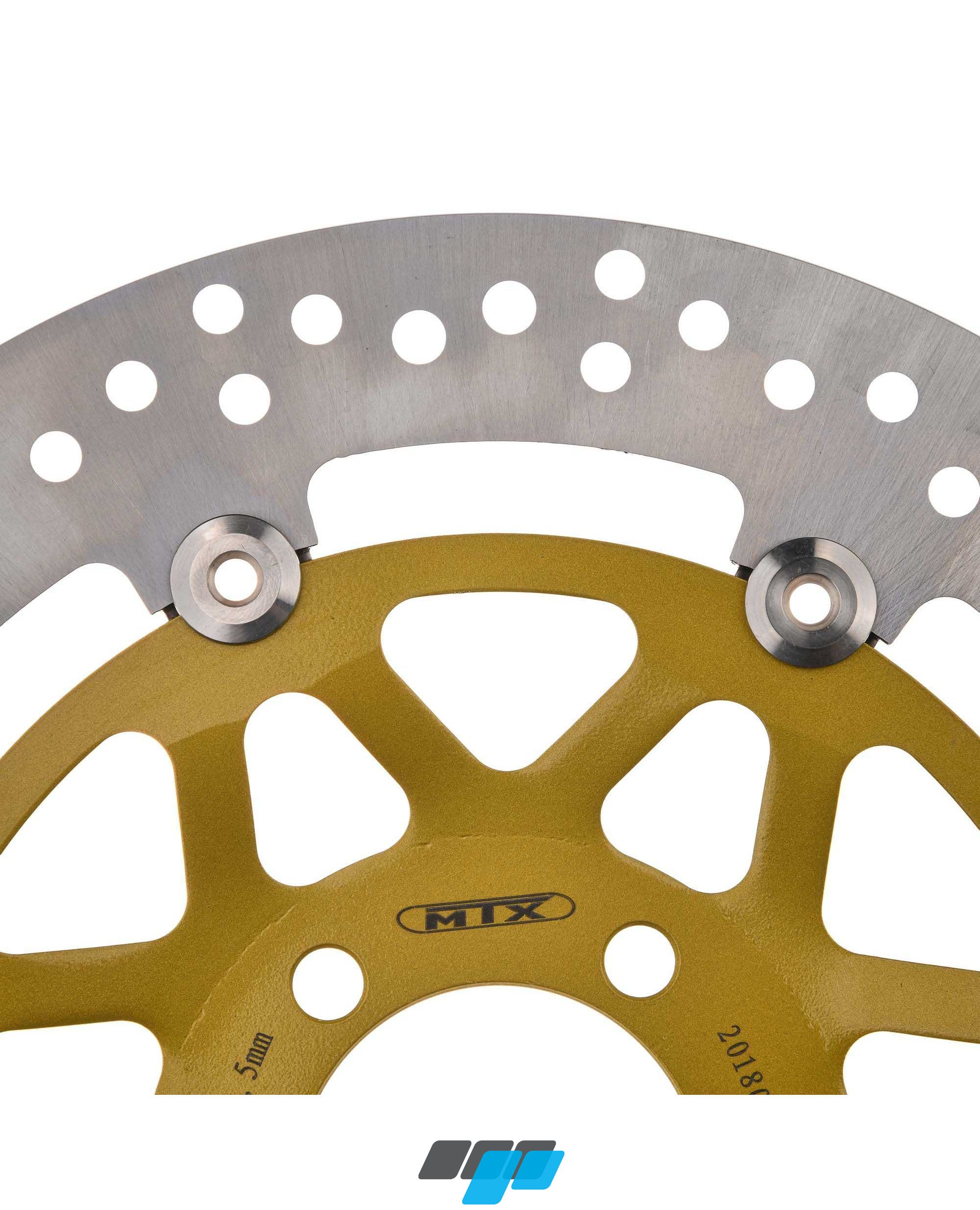 MTX replacement motorcycle front brake disc featuring 296mm diameter round (not wavy) floating brake disc for Kawasaki ZX-9R Ninja motorcycles. Suitable aftermarket replacement for EBC MD4167 brake discs.