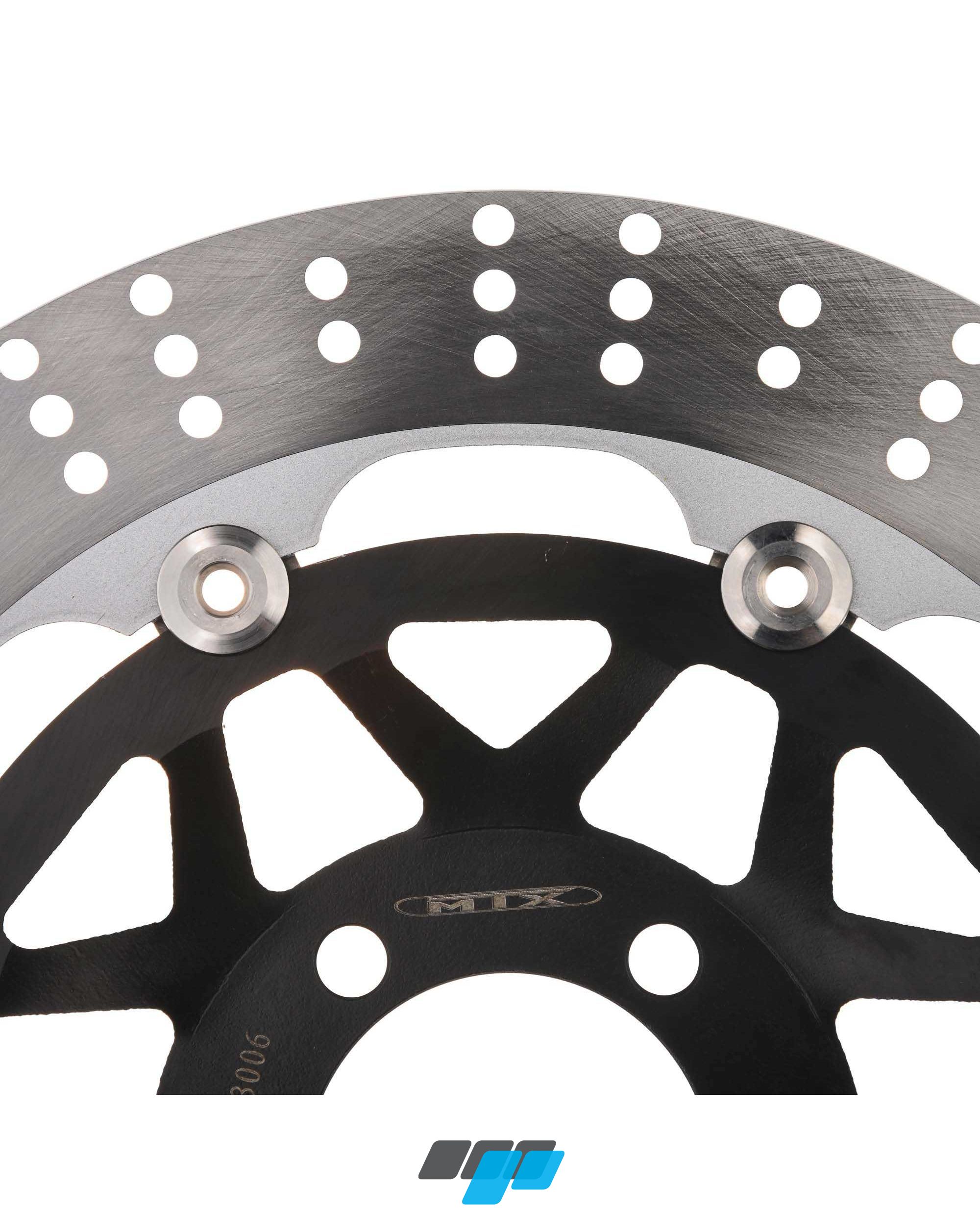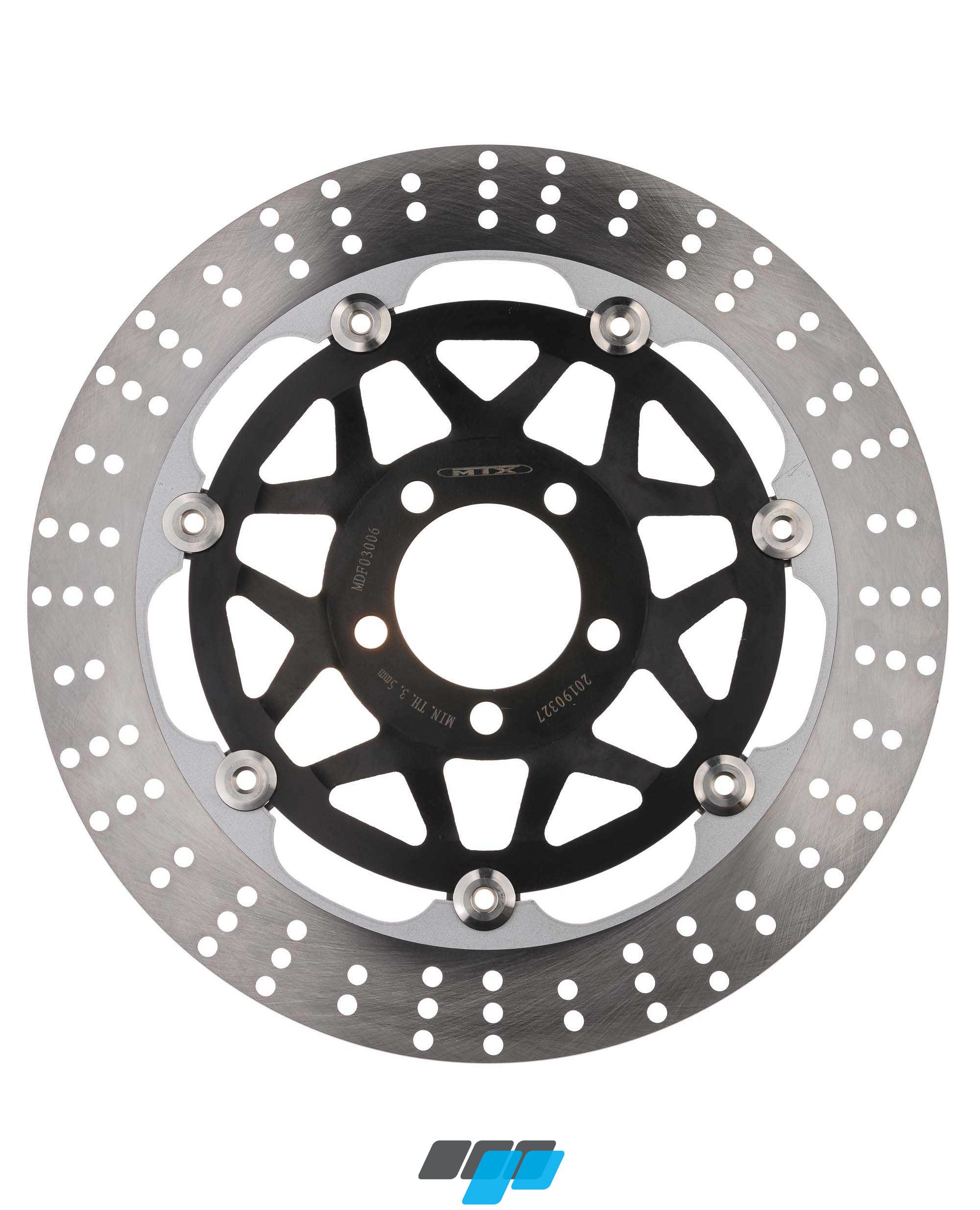 MTX replacement motorcycle front brake disc featuring 300mm diameter floating round, not wavy design disc for Kawasaki ZZR 600 motorcycles. Suitable aftermarket replacement for EBC MD4153 / Armstrong BKF729.
