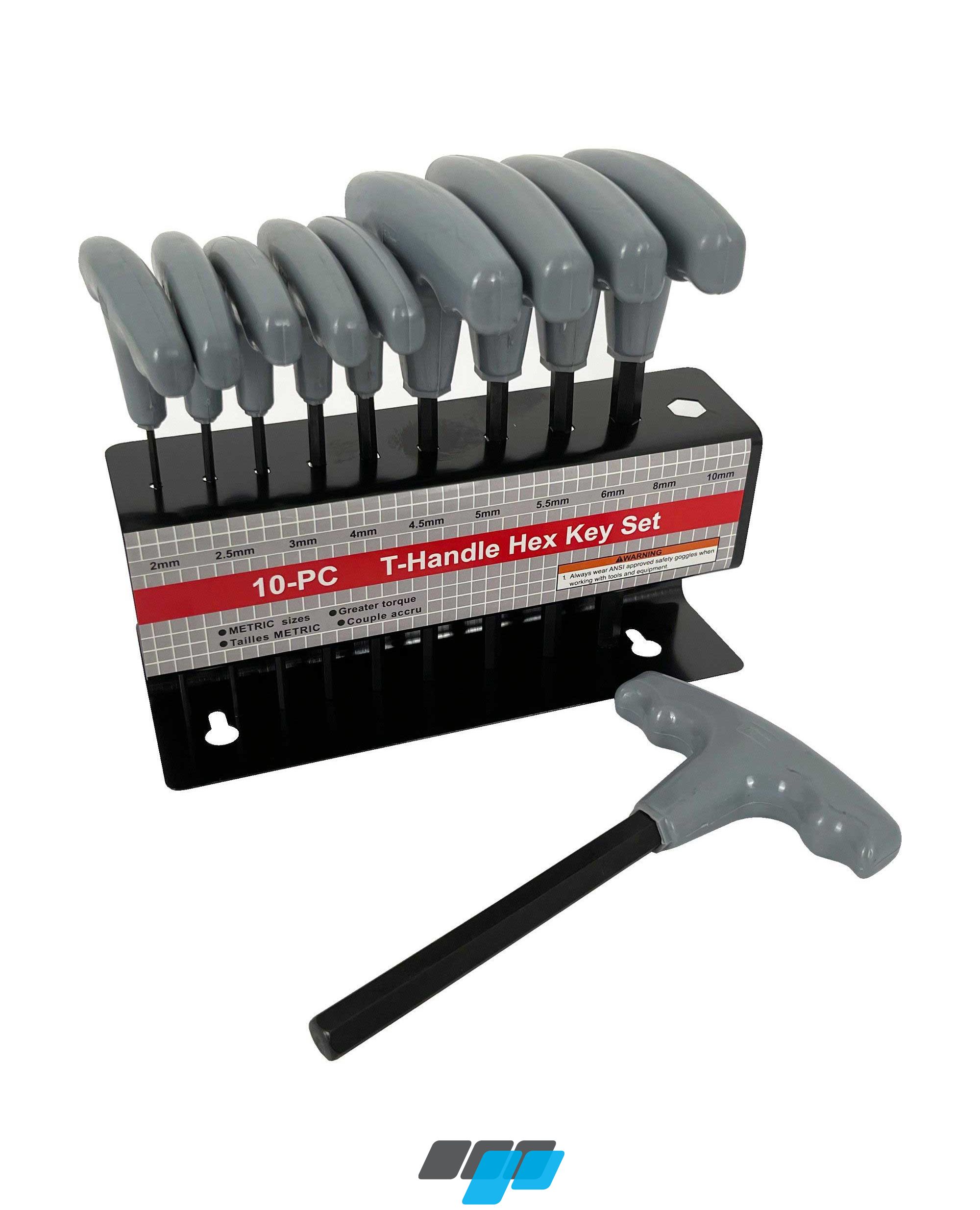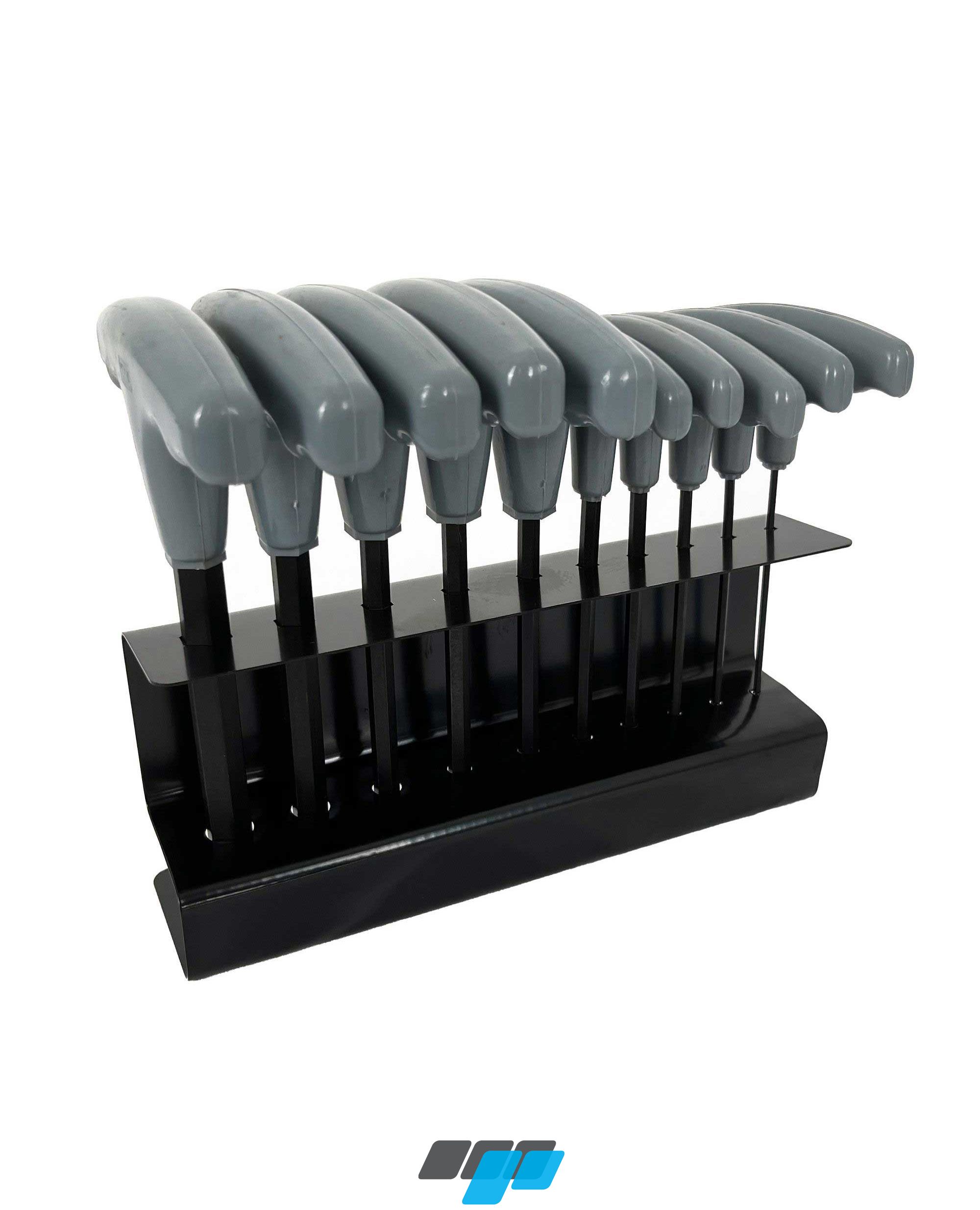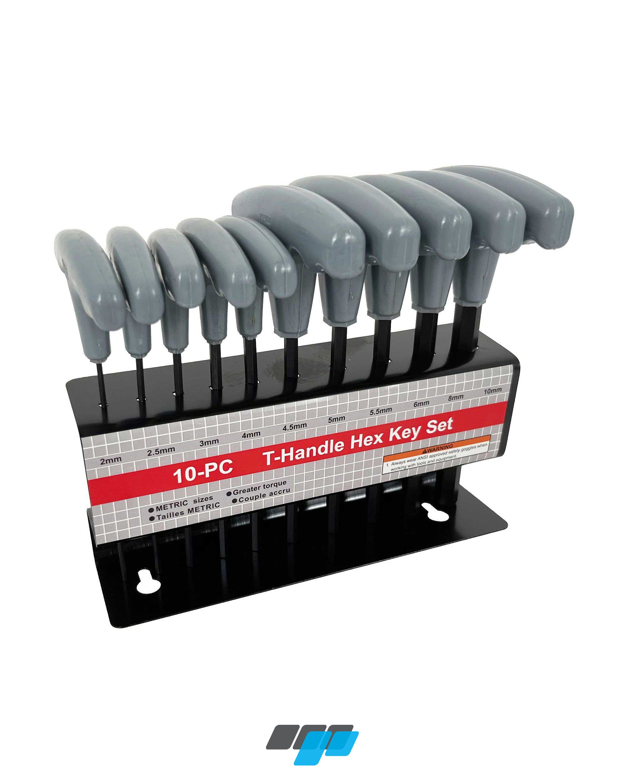 10 piece metric T-handle Allen key set with storage rack, features long handled T bar Allen keys with plastic handle includes handy storage rack.