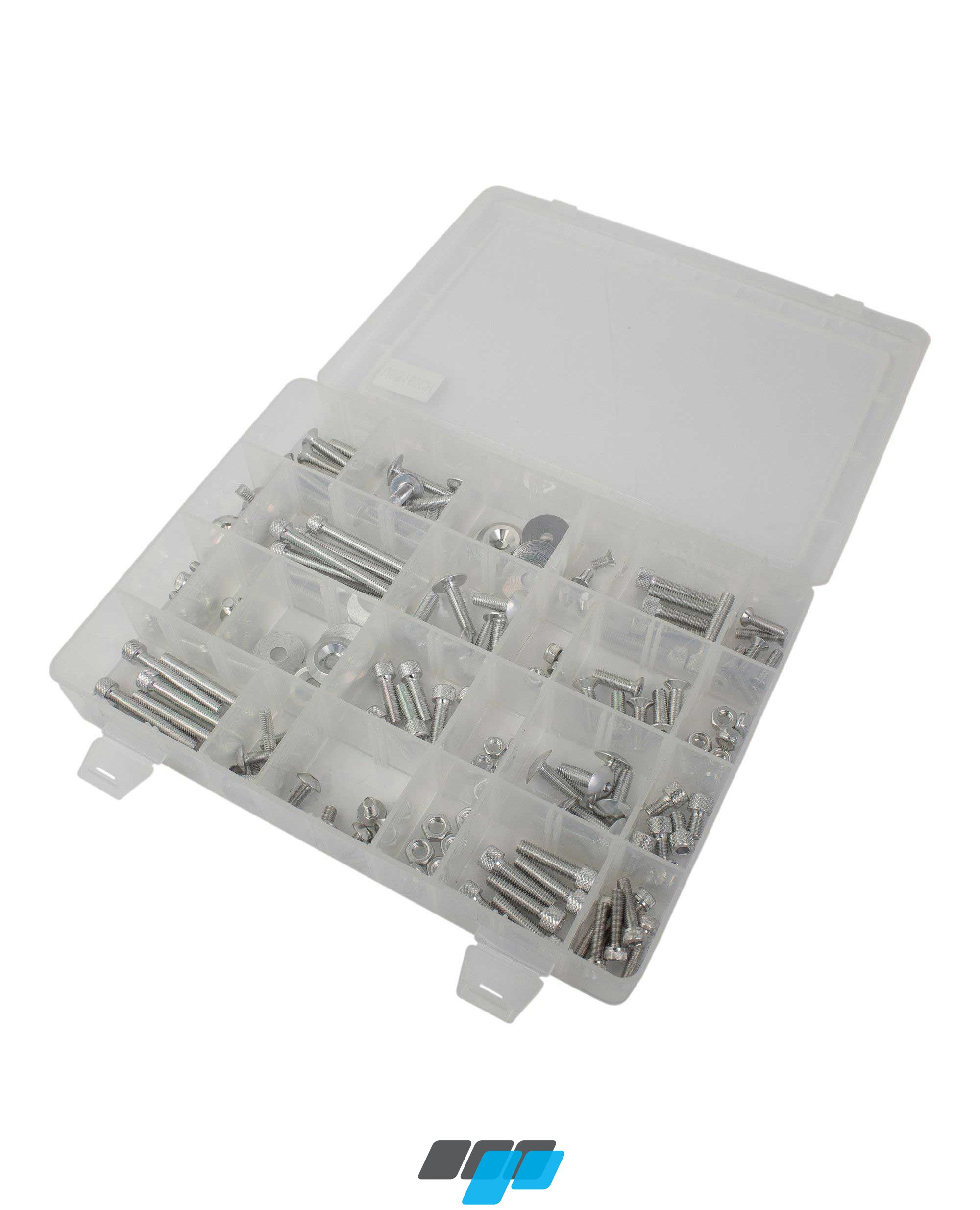 - These great colour-coded kits include 150 anodised alloy screws, nuts and washers in M5 and M6 threads