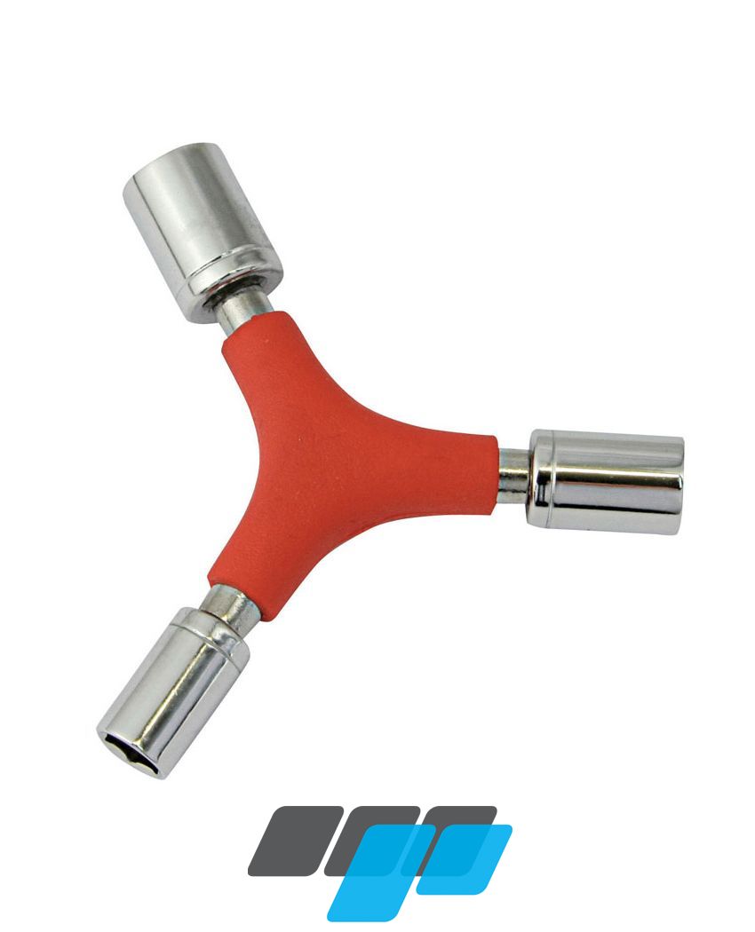 This Y shaped spanner includes removable 8mm - 12mm sockets. Handy pocket-sized tool which is ideal for emergency repairs. A great addition to any under the seat motorcycle toolkit.